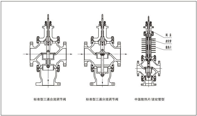 該閥有合(分)流普通型、合(分)流高溫型等多種型式。產品公稱 壓力等級有戶PN1.6、4.0、6.4;閥體公稱通徑范圍DN25~400;泄 漏等級有II級、IV級;流呈特性為直線和等百分比。多種品種規(guī)格可供選擇。